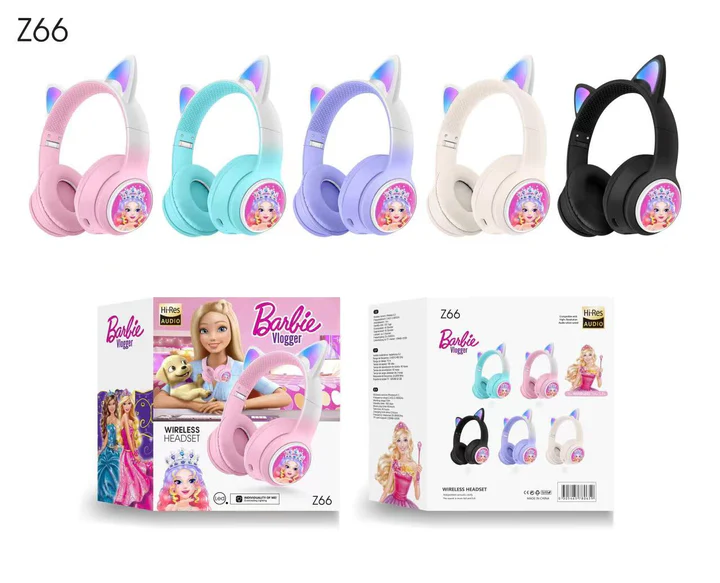 Le Casque Bluetooth Barbie Z66 sĂ©duit immĂ©diatement avec son style rose glamour inspirĂ© de lâunivers Barbie Vlogger. Un accessoire tendance que les petites filles adorent porter au quotidien.