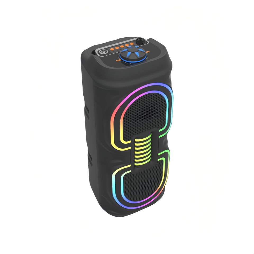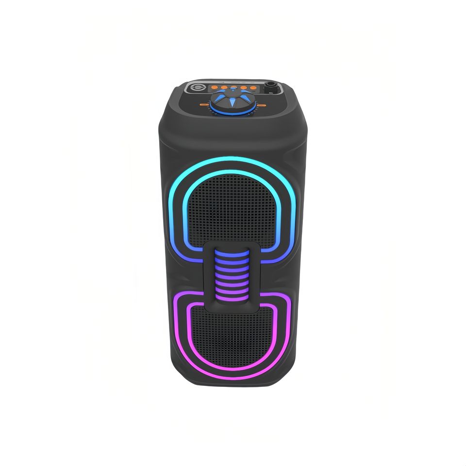 Conçue dans un corps en plastique solide et léger, cette enceinte se distingue par son style moderne et ses finitions soignées. Sa poignée intégrée facilite le transport, que ce soit à la maison, en extérieur ou lors de vos déplacements.