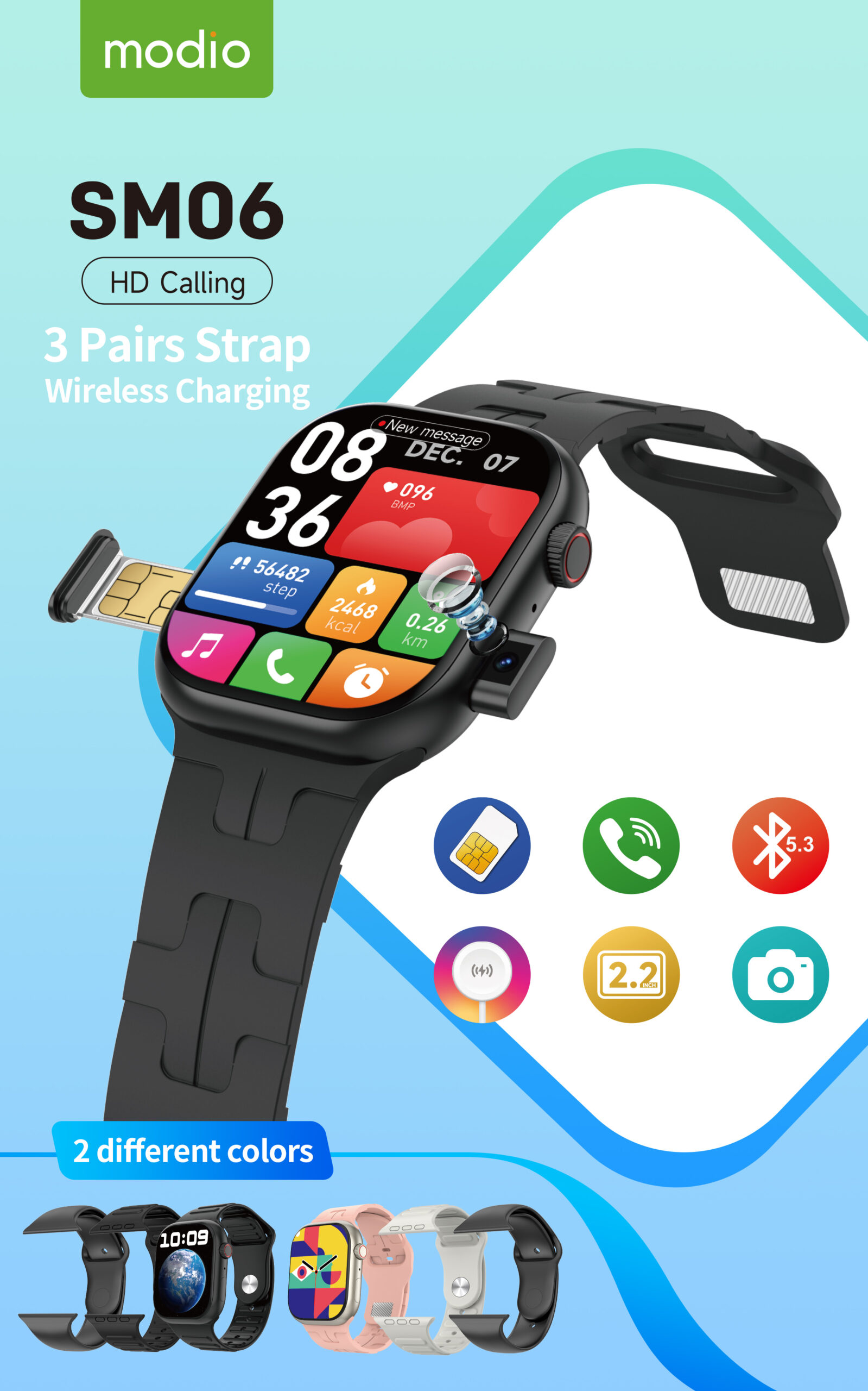 La Smartwatch SM06 combine design moderne, performance et fonctionnalités avancées. Grâce à sa compatibilité carte SIM, son double appareil photo et ses appels Bluetooth, elle vous permet de rester joignable à tout moment – même sans votre téléphone.