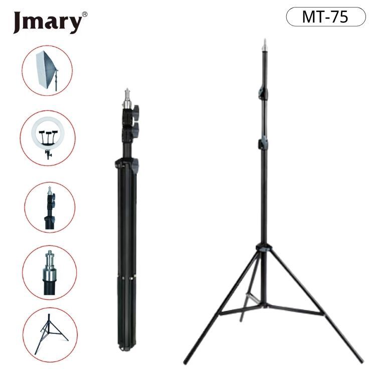 Le trépied JM ARY MT‑75 offre une hauteur maximale de 210 cm, idéale pour capturer photos, vidéos ou vlogs sous différents angles.